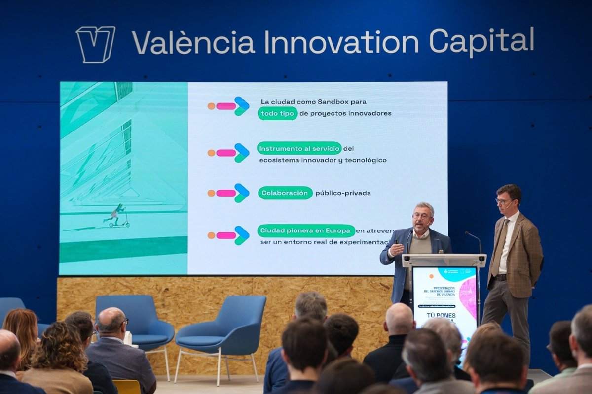 El Ayuntamiento de València ha presentado este miércoles el Sandbox Urbano, un proyecto pionero en la Unión Europea que convierte a la ciudad en un "laboratorio vivo" donde se pueden testar soluciones innovadoras en un entorno real. Para ello, este instrumento cuenta con más de 100 recursos municipales como son edificios públicos, infraestructuras urbanas y eventos multitudinarios.