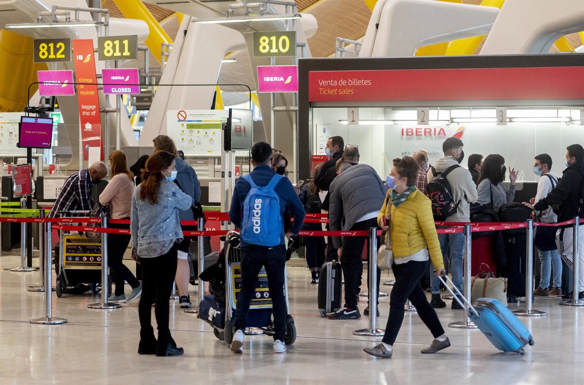 Viajeros con maletas en la terminal T-4 en el Aeropuerto Adolfo Suárez Madrid-Barajas, a 13 de abril de 2022, en Madrid (España). Hoy, Miércoles Santo, arranca la segunda fase de la Operación Salida de la Semana Santa 2022, una jornada marcada por el in - Alberto Ortega - Europa Press