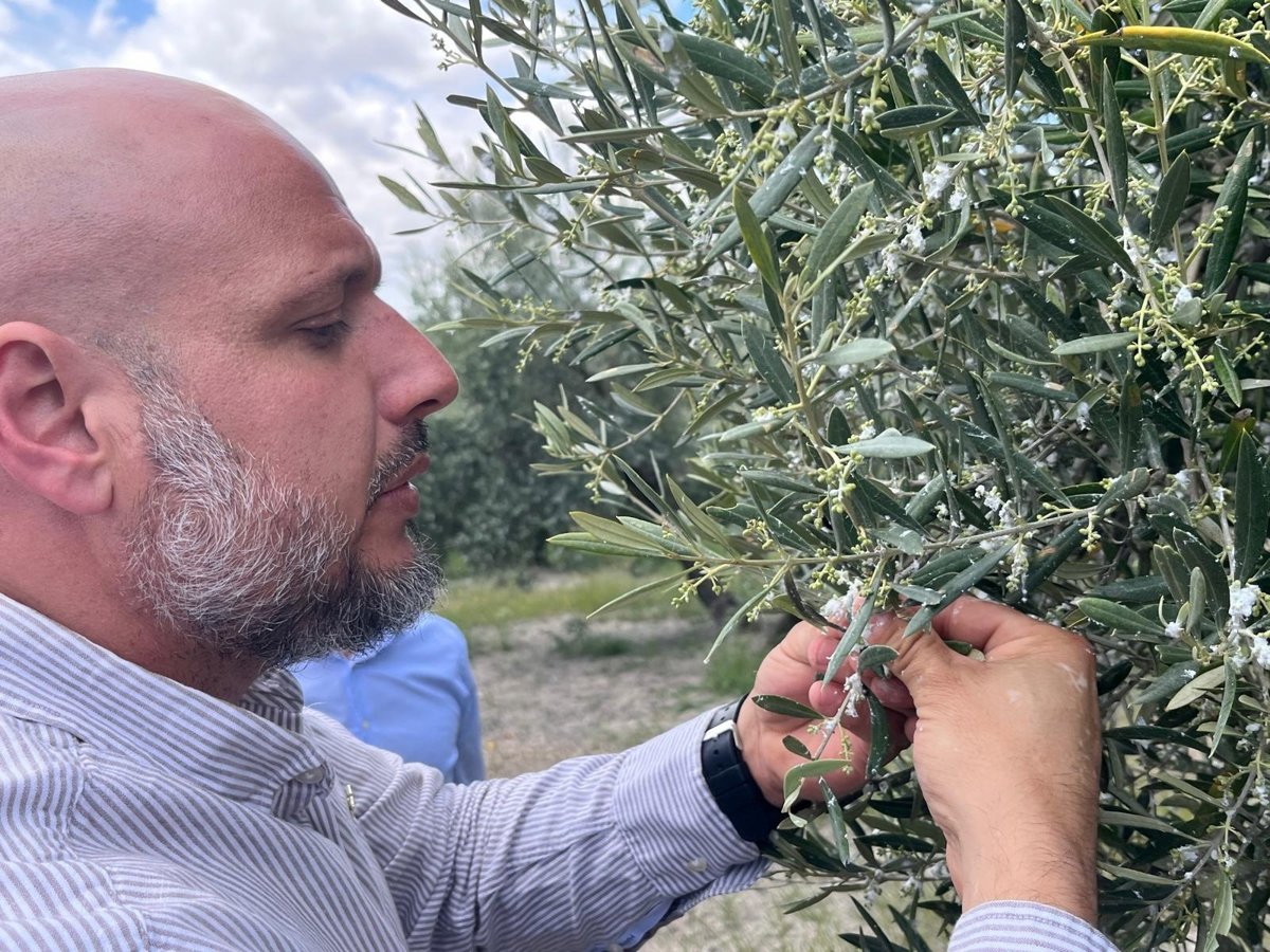 Rodrigo Alonso durante su visita a olivares afectados por la plaga del algodoncillo - VOX