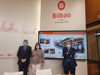 Imagen del concejal delegado de Servicios y Calidad de Vida, Kepa Odriozola y del director y la subdirectora de Espacio Público de Bilbao, Tomás del Hierro y Carmen San Emeterio. - AYUNTAMIENTO DE BILBAO
