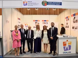 El Instituto vasco de Salud y Seguridad Laboral cuenta con un stand en este certamen, que este miércoles han visitado la consejera de Trabajo y Justicia, María Jesús San José, el viceconsejero de Trabajo, Jon Azkue, la diputada vizcaína de Empleo, Inclusión e Igualdad, Teresa Laespada, además del director general de Osalan.