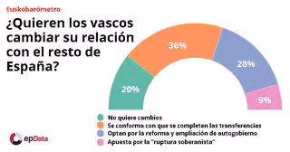 Un 20% de los ciudadanos vascos no desea cambios en el actual estatus de autogobierno y un 36% se conforma con que se completen las transferencias contempladas en el Estatuto, frente al 28% que apuesta por reformarlo para ampliar el autogobierno y el 9% que apuesta por la "ruptura soberanista", según los datos del último Euskobarómetro presentado este viernes en Bilbao.