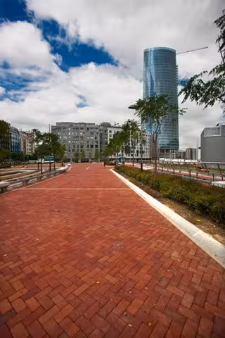 Así, la superficie total de la obra es de 22.600 metros cuadrados, de los que 2.400 son de zonas verdes. La nueva ordenación logra una conexión peatonal de elementos tan importantes como el puente de La Salve, la explanada del Museo Guggenheim y el espacio situado sobre la subcentral de Iberdrola, que antes tenía un uso marginal.
