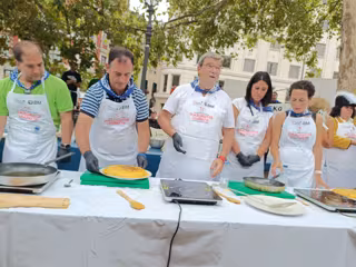 Juan Mari Aburto y varios integrantes de la Comisión Mixta de Fiestas en el Concurso de Tortillas - EUROPA PRESS