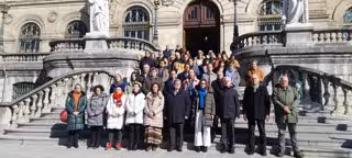 Aburto, junto al resto de la corporación municipal, ha participado este viernes en una concentración silenciosa de cinco minutos en las escalinatas del Ayuntamiento de Bilbao, impulsada por la Asociación de Municipios Vasco (EUDEL), en solidaridad con el pueblo de Ucrania, en el primer aniversario de la invasión rusa.