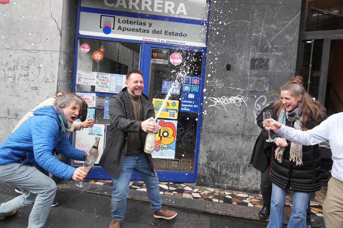 Celebración ante la administración Loterías Carrera, en Bilbao, que ha repartido 200.000 euros del primer premio de El Niño - H. BILBAO - EUROPA PRESS