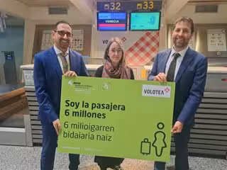 Para celebrarlo, el director del aeropuerto, Iván Grande, ha despedido en la terminal a la "pasajera 6 millones", que ha partido en la mañana de este lunes en un Airbus 320 de la compañía Volotea con destino a Venecia.