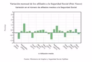 En ambos casos, la evolución de la afiliación vasca se situó por debajo de la media estatal, que creció en términos mensuales un 0,19% y un 2,99% en la variación interanual.