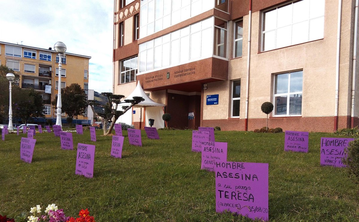 Carteles de denuncia de la violencia machista , en Muskiz (Bizkaia) archivo - EUROPA PRESS