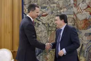 Según ha informado el PNV, el encuentro, que ha comenzado a las 17.00 horas y ha tenido una duración de una hora y cinco minutos, se enmarca dentro de la ronda de consultas que realiza el Monarca con los partidos políticos para proponer un candidato a la presidencia del Gobierno central.