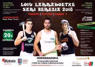 Los aizkolaris Aitzol Atutxa (Bizkaia), Iker Vicente (Navarra) y Xabier 'Arria V' Orbegozo (Gipuzkoa) protagonizarán el próximo 10 de noviembre en Leioa (Bizkaia) el encuentro "extraordinario" de 'herri kirolak' Loiu Larrakoetxe Sari Berezia 2018, según ha informado la plataforma Basque Sports, organizadora del evento.