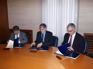 El diputado de Hacienda, Finanzas y Presupuestos de la Diputación Foral de Álava, José Luis Cimiano, el presidente del Consejo General del Notariado, Antonio Ojeda y el decano del Colegio Notarial del País Vasco, Manuel López Pardiñas, han suscrito un convenio de colaboración para mejorar la gestión de los tributos, posibilitar la tramitación electrónica de los impuestos, facilitar el pago en voluntario y prevenir el fraude fiscal.