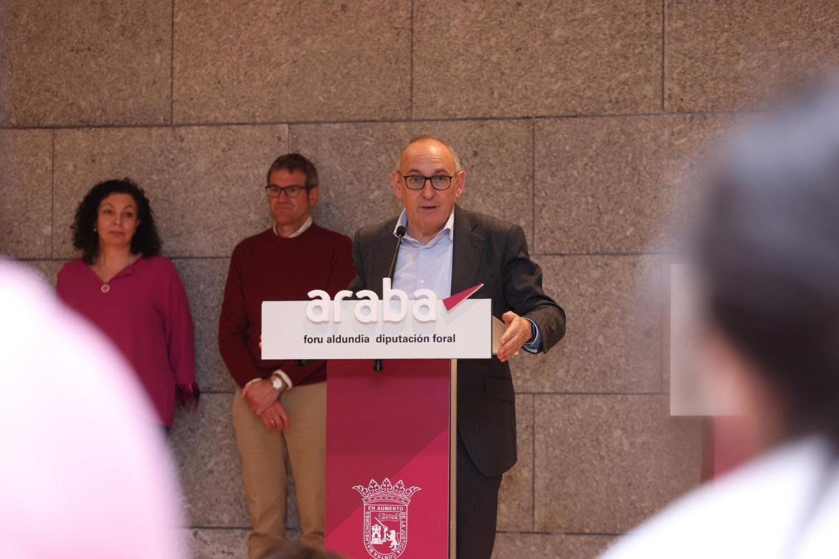 El diputado general de Álava, Ramiro González, ha presidido esta tarde la recepción que la institución foral ofrece a las familias del territorio que acogen a niños, niñas y adolescentes en situación de desamparo y desprotección grave, y cuyos progenitores no pueden hacerse cargo de su cuidado.