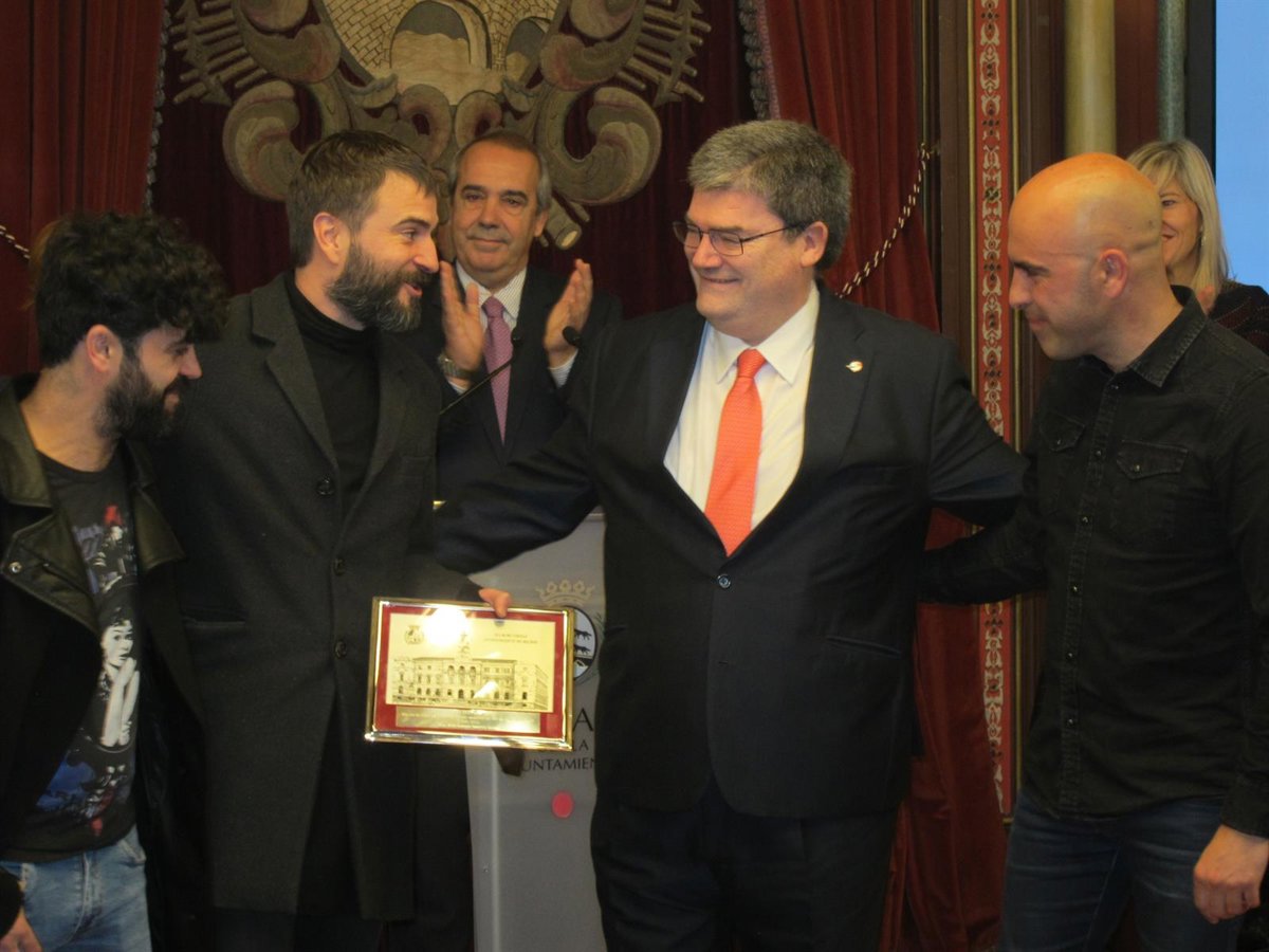 Durante la recepción, Juan Mari Aburto ha homenajeado al grupo 'Ken Zazpi' con la entrega a sus miembros de una placa en reconocimiento a su fomento del euskera a través de su música. El grupo inició su última gira en el Teatro Arriaga el pasado mes de enero y ofreció uno de los mejores de la pasada Aste Nagusia.