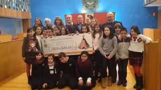A la entrega del cheque han asistido unos 20 escolares en representación de todos los niños y niñas de Barakaldo que han participado en el desarrollo del Rastrillo Infantil Solidario.