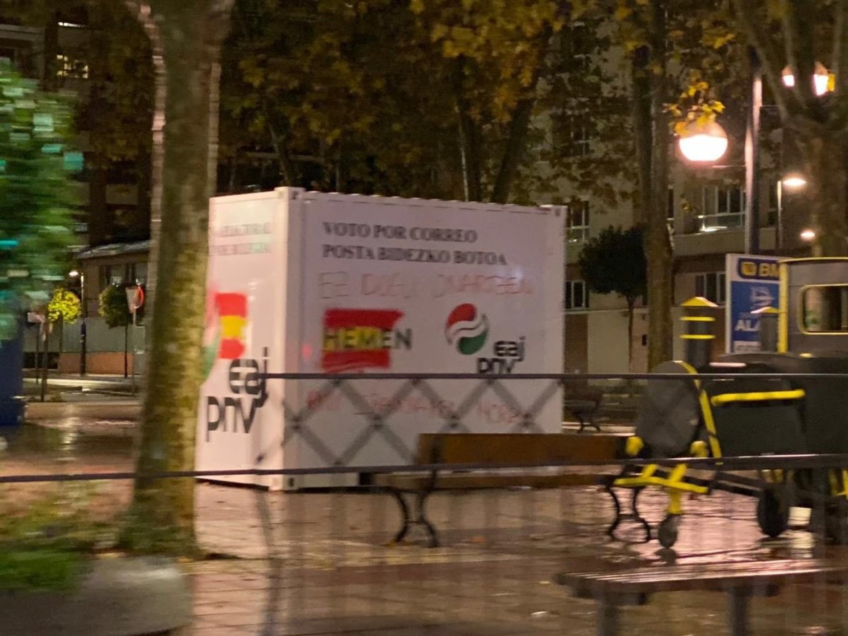 Pintadas en una caseta de voto por correo del PNV - AYUNTAMIENTO VITORIA