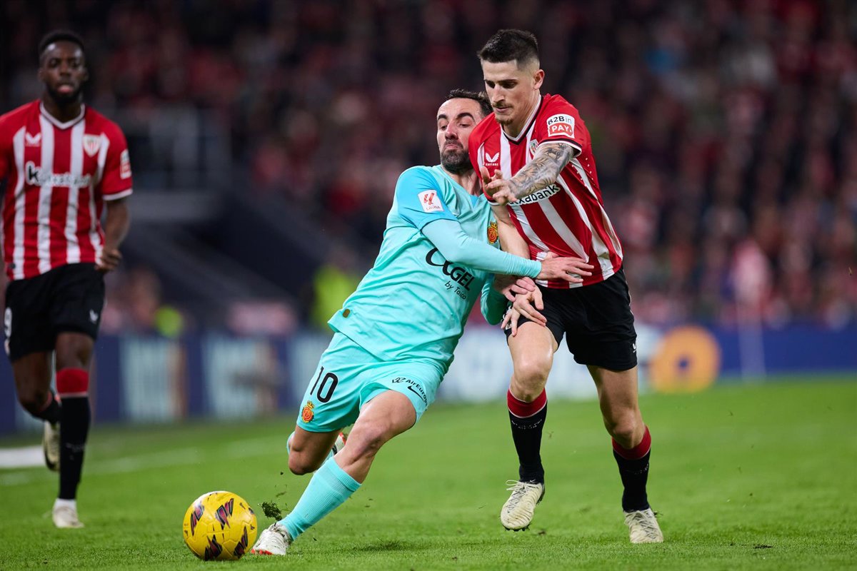 Archivo - Sergi Darder of RCD Mallorca competes for the ball with Oihan Sancet of Athletic Club during the LaLiga EA Sports match between Athletic Club and RCD Mallorca at San Mames on February 2, 2024, in Bilbao, Spain. - Ricardo Larreina / AFP7 / Europa Press - Archivo