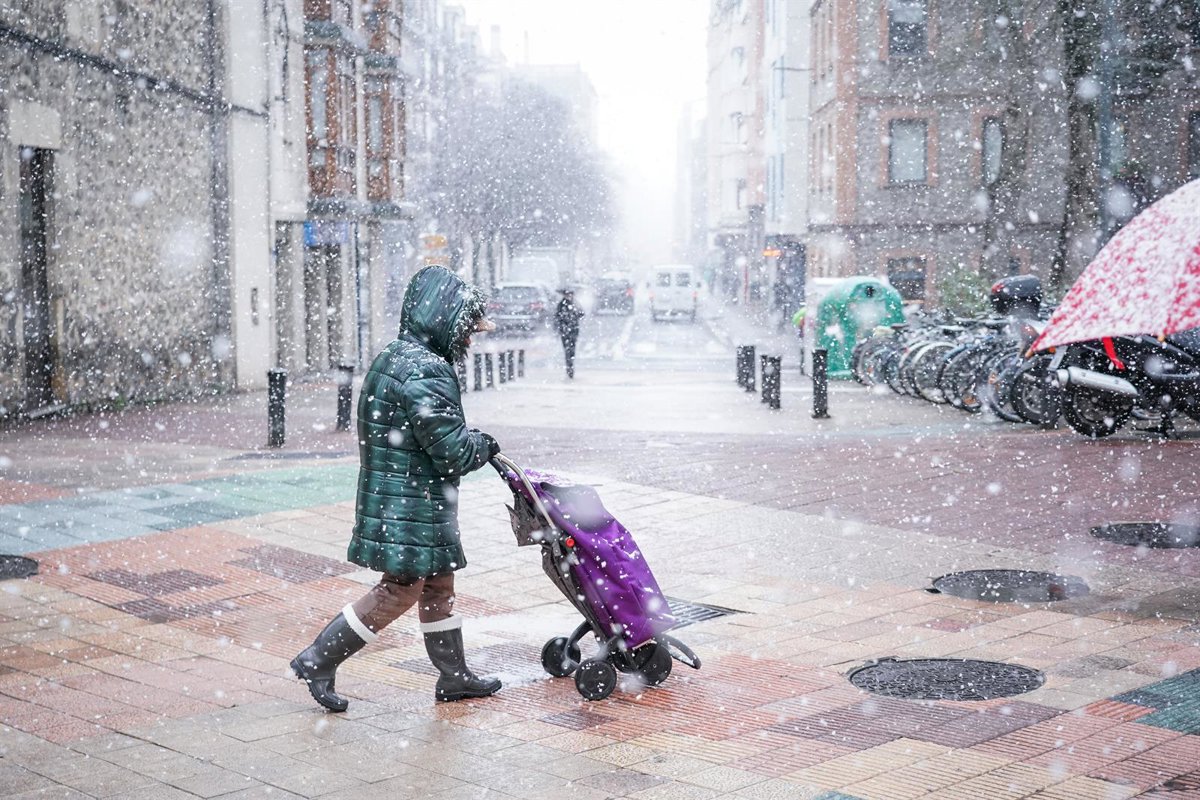 La cota de nieve este sábado estará en torno a 400-600 metros, con espesores previstos de 2 a 10 cm, a 1.000 metros. Habrá chubascos débiles, más frecuentes en la vertiente cantábrica y en el oeste. También se darán heladas débiles en el interior, especialmente en zonas de montaña, según Euskalmet.