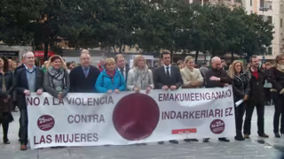 Una decena de alumnos de Educación Secundaria Obligatoria (ESO) en el Instituto Antonio Trueba y una monitora-educadora de prevención de la violencia machista, han leído este viernes en la Herriko Plaza de Barakaldo (Bizkaia), el manifiesto aprobado por el Ayuntamiento fabril con motivo del Día Internacional contra la Violencia hacia las Mujeres. Posteriormente, se ha celebrado una concentración silenciosa en el mismo punto, a la que ha asistido el alcalde, Tontxu Rodríguez.