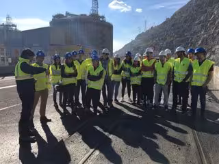 Según ha informado la Autoridad Portuaria de Bilbao, los estudiantes han tenido ocasión de visitar el estado de las obras del nuevo muelle y ver el trabajo del dique flotante (cajonero), así como las plataformas inferiores ya realizadas para la estabilización de la ladera.