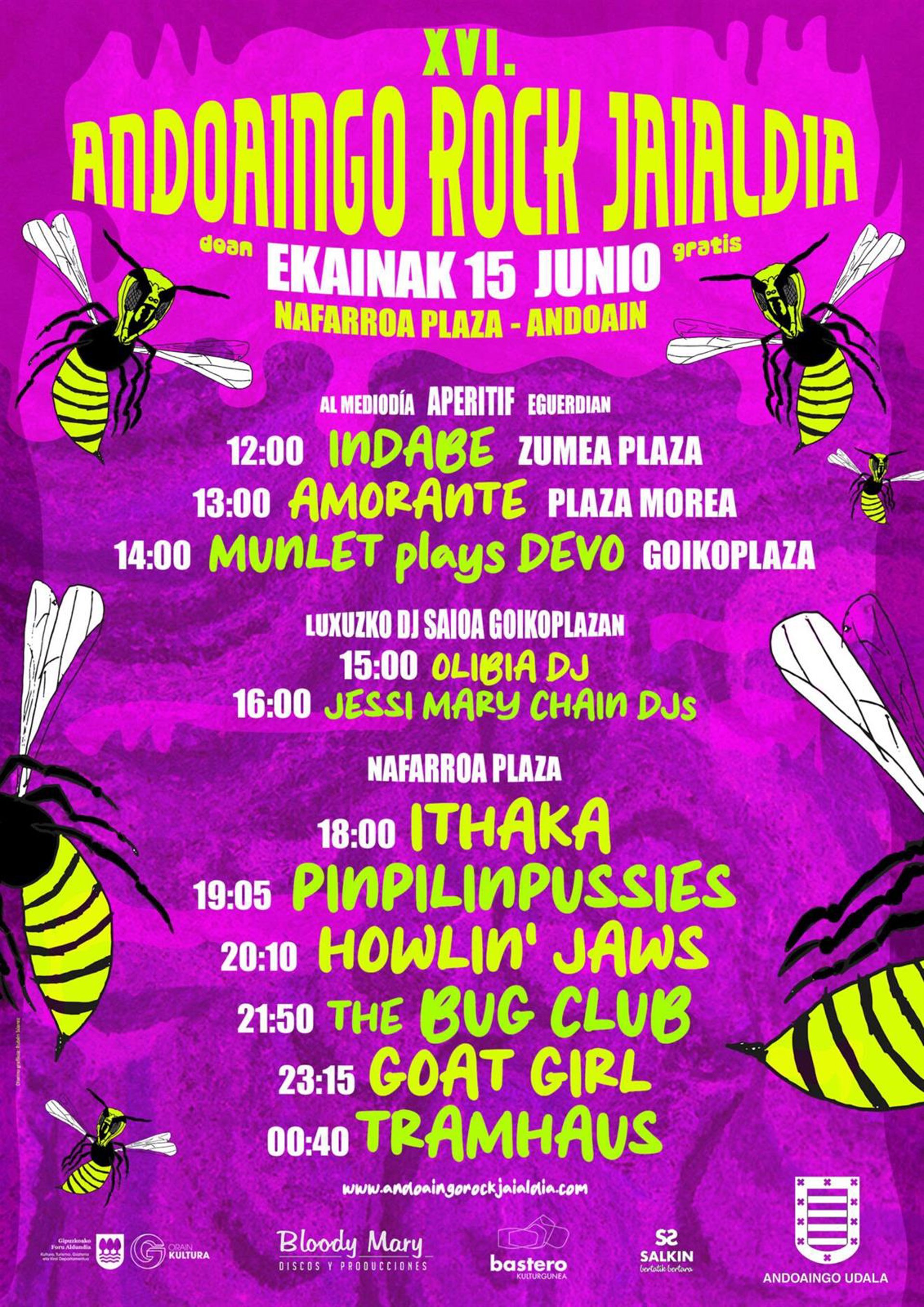 Tal y como han informado en una nota desde la promotora de la cita, Bloody Mary, esta 16ª edición ha cerrado un cartel con nueve bandas y músicos de Reino Unido, Países Bajos, Francia y Euskadi y Navarra, encabezados por Goat Girl, The Bug Club y Tramhaus junto a Howlin’ Jaws, Amorante, Pinpilinpussies, Ithaka, Indabe y Munlet plays Devo.
