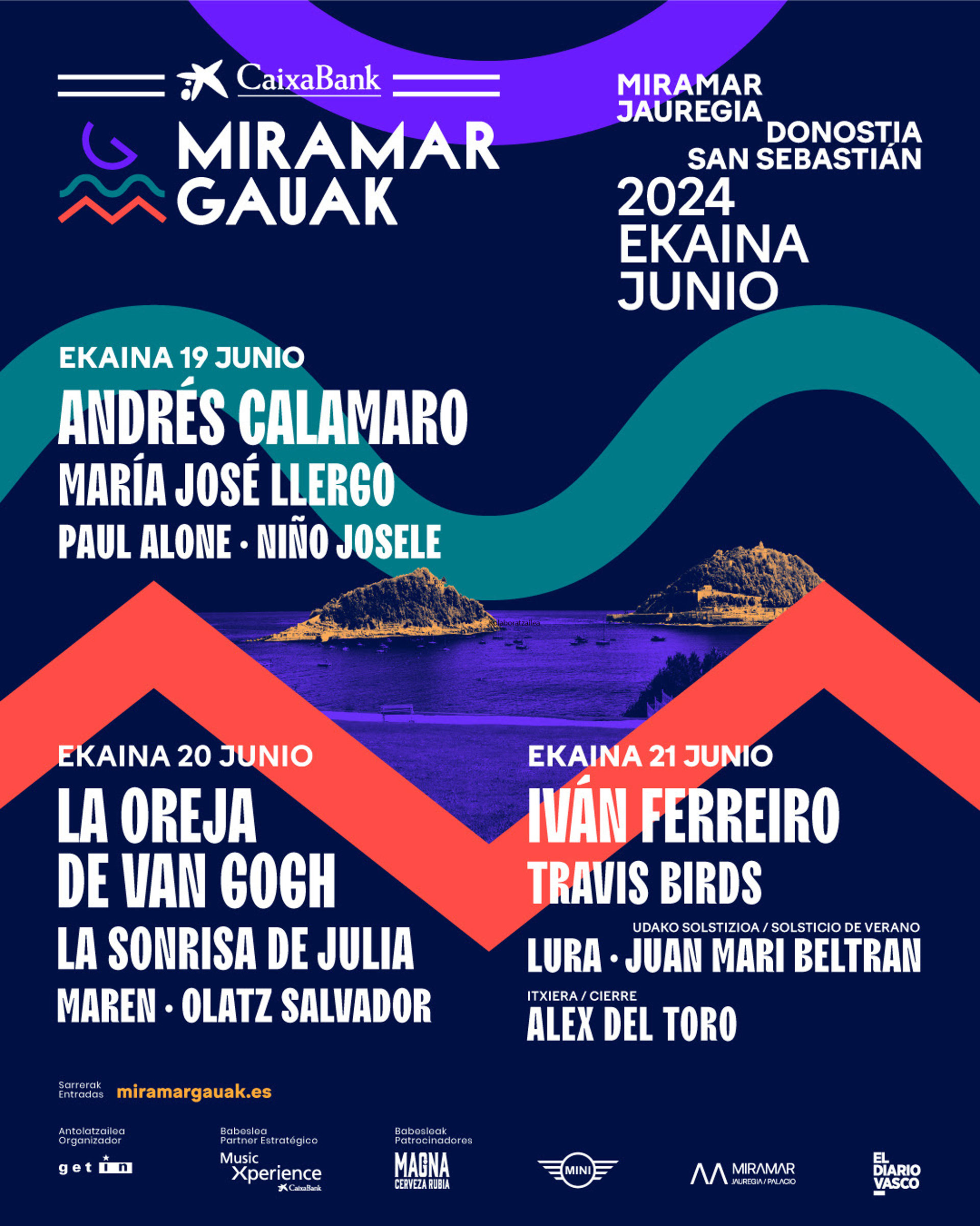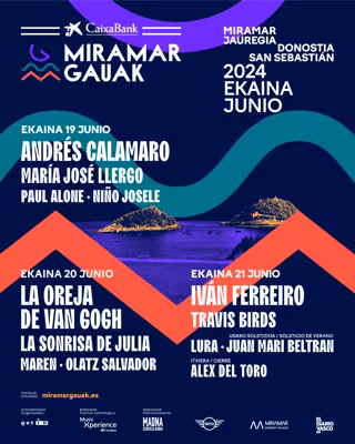 Andrés Calamaro, La Oreja de Van Gogh e Iván Ferreiro encabezarán el cartel de la primera edición de festival CaixaBank Miramar Gauak que se celebrará los días 19, 20 y 21 de junio en el Palacio Miramar de San Sebastián.