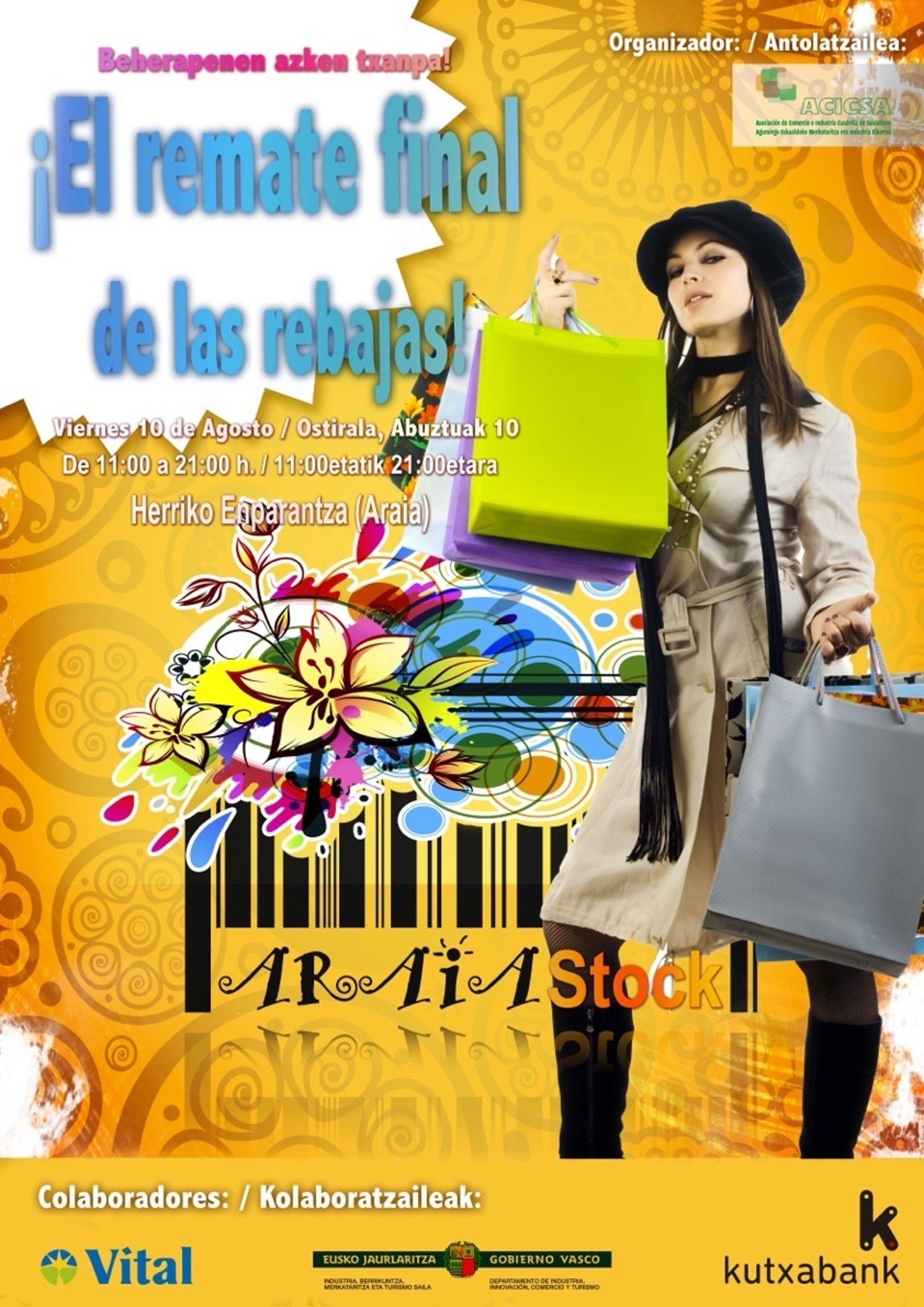 En un comunicado, la Asociación de Comerciantes e Industriales de la Cuadrilla de Salvatierra (ACICSA), organizadora del evento ha informado de que, con la colaboración de Caja Vital - Kutxabank, los comercios participantes pondrán a la venta "productos de calidad, pero a precios de oportunidad con atractivos descuentos".