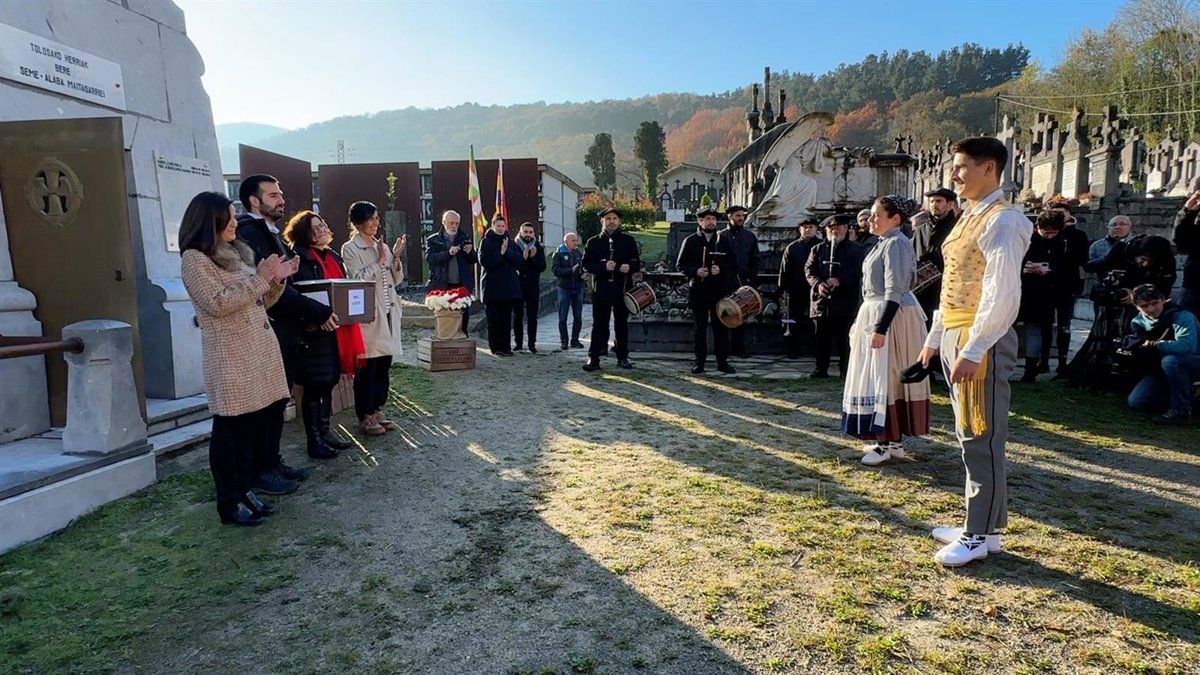 el acto de hoy, donde les han acompañado la directora del Instituto de la Memoria, la Convivencia y los Derechos Humanos-Gogora, Aintzane Ezenarro; los miembros de la corporación tolosarra; Ion Gambra, director de Derechos Humanos y Memoria Democrática de la Diputación de Gipuzkoa; miembros de la Sociedad de Ciencias Aranzadi, así como allegados de la familia.