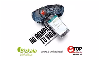 Los autobuses y marquesinas de Bizkaibus exhibirán a partir de este miércoles carteles con el lema 'No rompas tu vida. Di no al uso del móvil al volante', dentro de una campaña que el servicio de autobuses vizcaíno realiza junto a Stop Accidentes para prevenir el uso del teléfono móvil mientras se conduce, la principal causa de accidentes en la carretera en la actualidad.