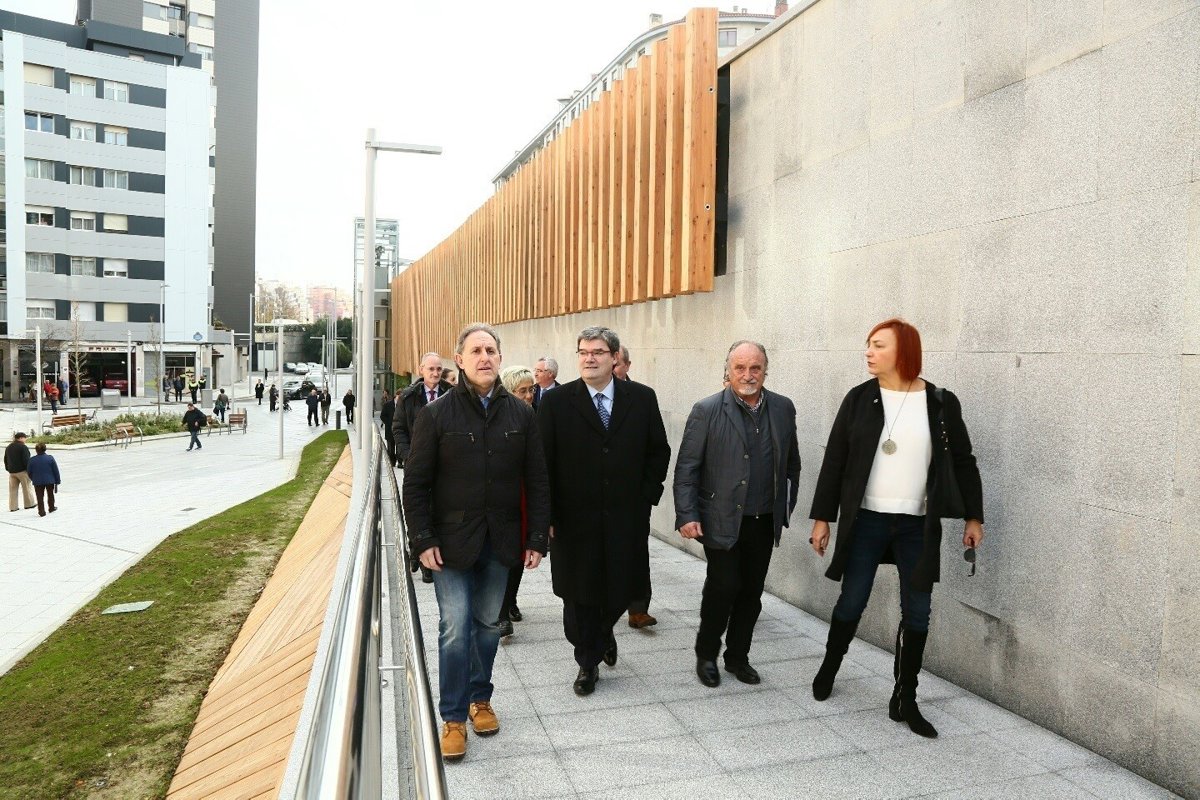 El Ayuntamiento de Bilbao ha inaugurado este viernes la urbanización de la cubierta de la línea de FEVE desde Elejabarri hasta Gordóniz, que ha conllevado una inversión de 3,4 millones de euros. Estas actuación, que supone la conexión de Rekalde con el centro de la villa, ha sido posible después de que la demolición de los viaductos de Sabino Arana en 2013 permitiera la recuperación del corazón del barrio de Basurto en Sabino Arana.