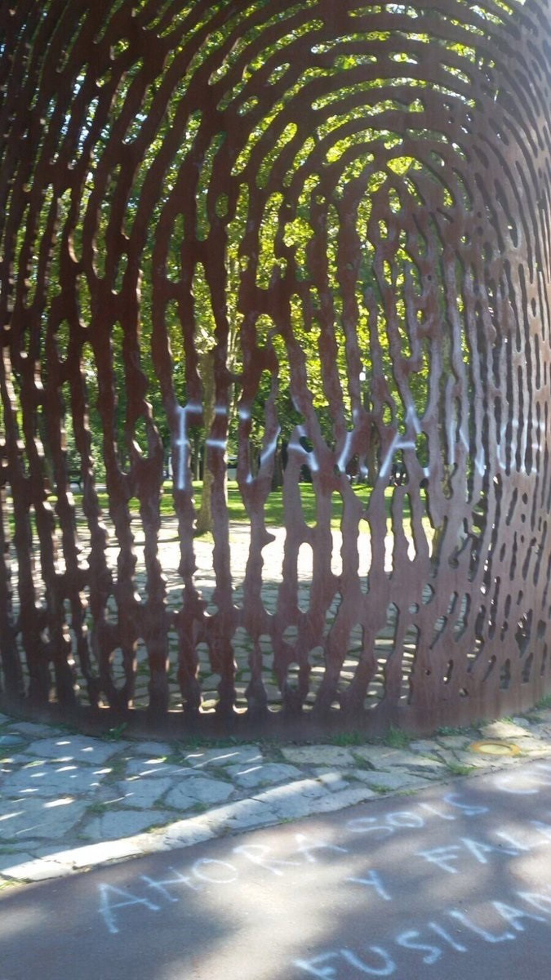 El monumento 'Aterpe 1936 (La huella)' ubicada en el barrio bilbaíno de Artxanda, que recuerda a las personas que lucharon en la Guerra Civil contra el franquismo, apareció este pasado domingo con diversas pintadas falangistas.