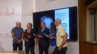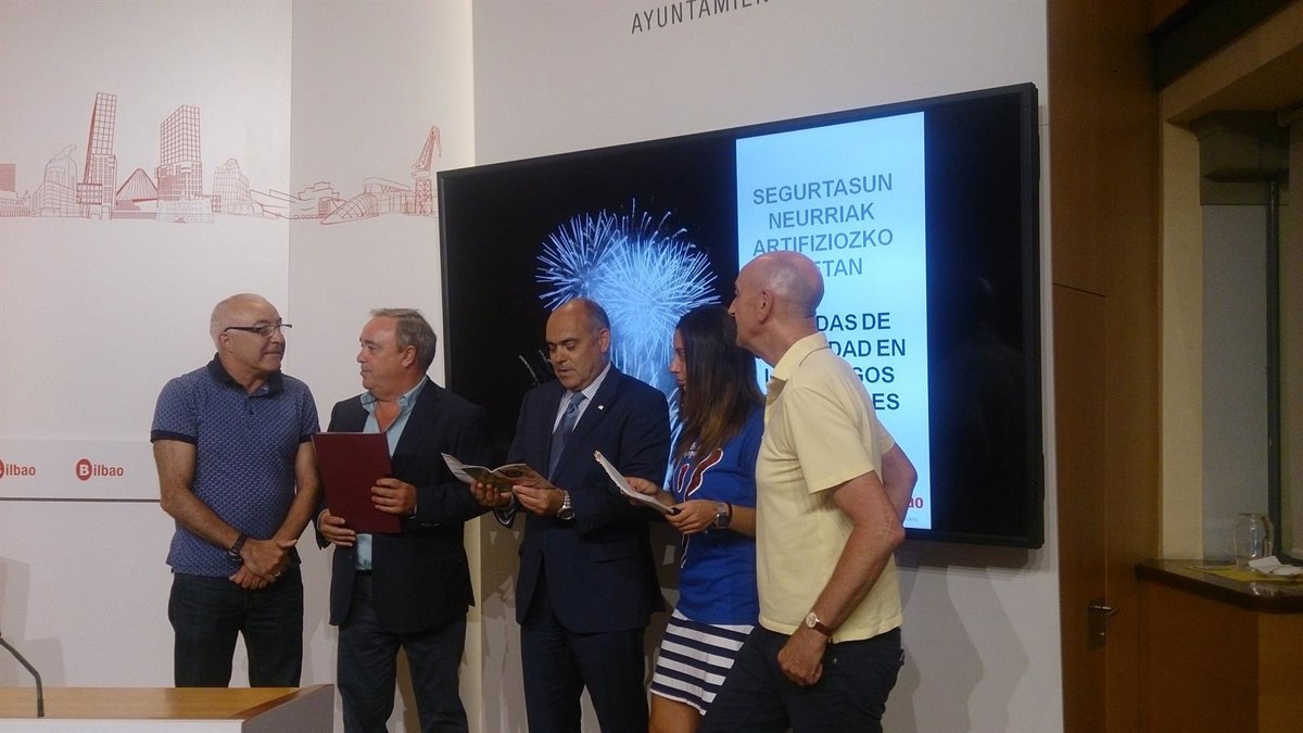 El concejal Delegado del Área de Seguridad Ciudadana, Tomás del Hierro, y el director de Protección Civil y Emergencias, Andoni Oleagordoia, han presentado este martes las medidas de seguridad previstas durante los fuegos artificiales, "el espectáculo más multimudinario" de las fiestas de la capital vizcaína.