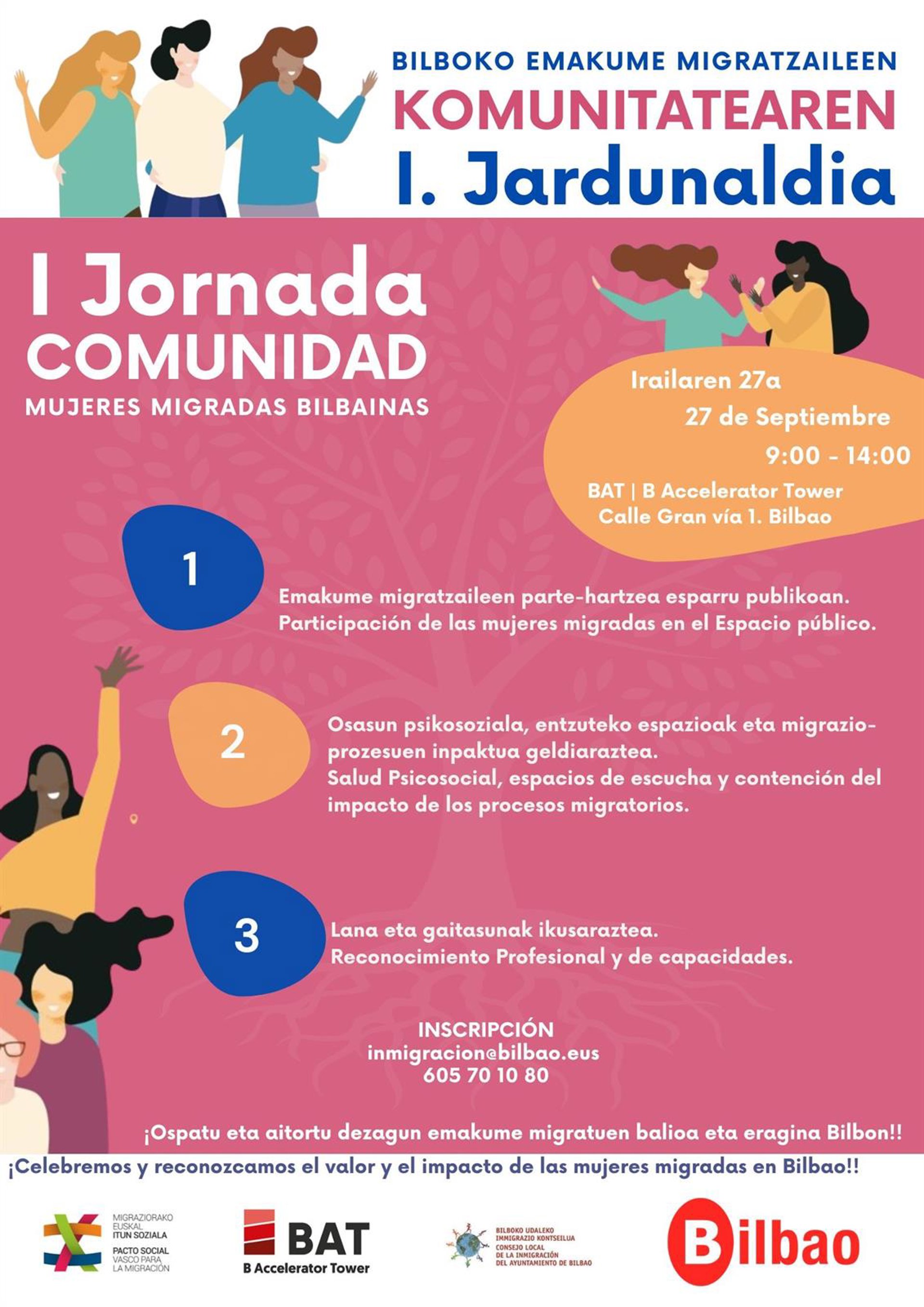 La jornada, impulsado por la Comunidad de Mujeres Migradas Bilbaínas, vinculada al Reconocimiento anual de mujeres migradas que otorga el Ayuntamiento de Bilbao y el Consejo Local de la Inmigración, estará dinamizada por la Asociación Mujeres Migradas Emprendedoras, con Maylin Vergara y Stella Maris Garcia.