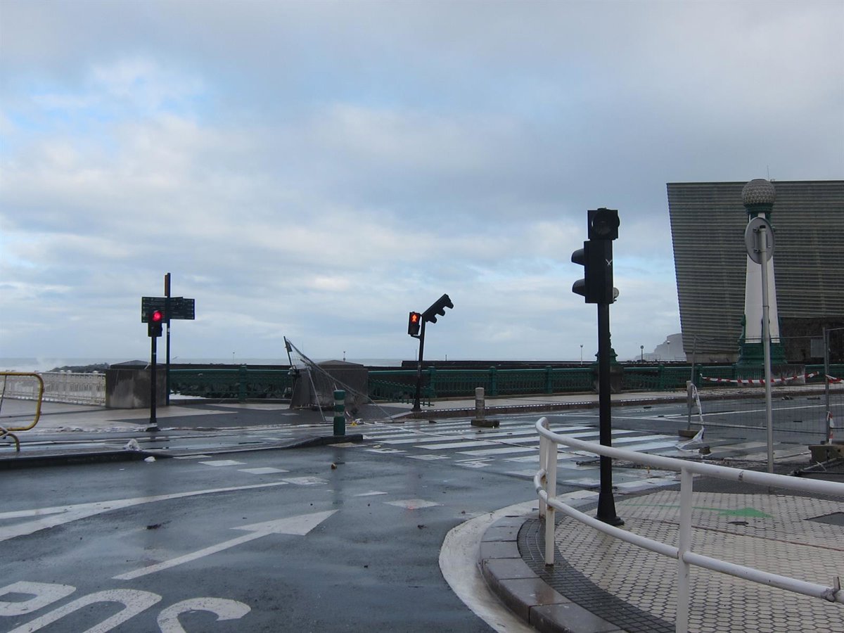 El Ayuntamiento de San Sebastián ha informado del cierre este viernes el puente del Kursaal, como medida preventiva por el temporal de olas de hasta siete metros previsto hasta el sábado.