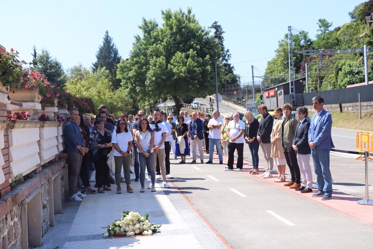 El acto ha tenido lugar este sábado a mediodía frente al apeadero de Martutene, y, como en otras ocasiones, ha consistido en un sencillo homenaje de reconocimiento en el que ha participado el alcalde de San Sebastián, Eneko Goia, representantes de los grupos municipales de PNV como Aitziber San Román; de PSE-EE como Ane Oiarbide; de PP como Borja Corominas y de Elkarrekin Donostia como Marta Huarte.
