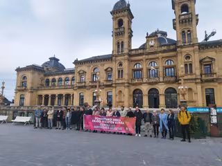 La concentración ha tenido lugar en los jardines de Alderdi Eder, frente al Palacio Consistorial, bajo el lema 'Contra las agresiones sexistas' en una pancarta. Han tomado parte la teniente de alcalde, Nekane Arzallus, y representantes de todos los grupos municipales, PNV, PSE-EE, EH Bildu, PP y Elkarrekin Donostia, así como la directora foral de Igualdad, Nerea Isasi, la diputada foral de Cultura, Goizane Álvarez, y el portavoz del PNV en Juntas de Gipuzkoa, Ianko Gamboa.