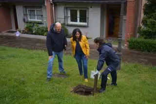 La concejala de Servicios, Rosa María del Palacio, y Ernesto Cañón, responsable de la empresa de desinsectación, en la presentación del plan de choque para controlar la población de cucarachas en Sestao. - AYUNTAMIENTO DE SESTAO