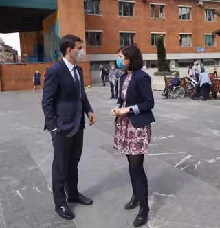 El diputado de Transportes y Movilidad Sostenible de Bizkaia, Miguel Ángel Gómez Viar, y la concejal de Desarrollo Sostenible y Medio Natural de Barakaldo, Alba Delgado, en la Herriko Plaza de Barakaldo. - AYUNTAMIENTO DE BARAKALDO