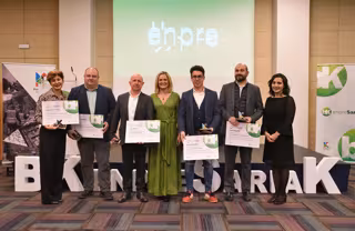 En el acto han participado diferentes representantes de las instituciones del Territorio. De este modo, Josu Bilbao, director general de Medioambiente de la Diputación de Bizkaia; Joseba Goikouria, director gerente de BIC Bizkaia Ezkerraldea; Idoia Postigo, directora general de Bilbao Metropoli 30; y Joseba Mariezkurrena, director general de emprendimiento y competitividad empresarial de la Diputación de Bizkaia, han sido los encargados, junto a la alcaldesa de Barakaldo, de entregar los galardones.