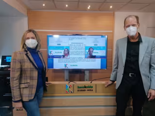 Amaia del Campo y Max Meinke en la presentación del proyecto Udala Etxean - AYUNTAMIENTO DE BARAKALDO