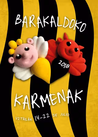 Cantero ha afirmado que las propuestas cuentan con "un nivel creativo muy alto". En la primera de ellas, ha explicado, "podemos ver a un jolín que ocupa todo el espacio del cartel y en cuya barriga se reflejan elementos característicos tanto de la ciudad como de las fiestas, como el Ayuntamiento, Barakaldo Antzokia, BEC, dantzaris, y cabezudos".