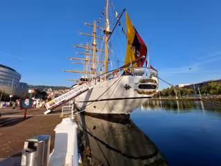 El Buque Escuela Guayas, insignia de la Armada ecuatoriana y embajador itinerante del Ecuador, ha llegado este viernes al muelle de Itsasmuseum Bilbao, 47 años después de su construcción en Erandio (Bizkaia).