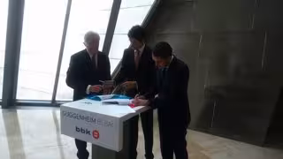 La firma del convenio se ha llevado a cabo en el Museo Guggenheim con la presencia del presidente de BBK, Xabier Sagredo, el director general de la pinacoteca, Juan Ignacio Vidarte, y el presidente del comité ejecutivo de la Fundación del Museo y diputado general de Bizkaia, Unai Rementeria.