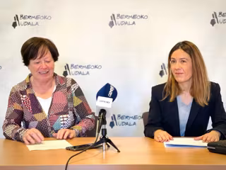 La directora de Obra Social de BBK, Nora Sarasola, y la teniente de alcalde de Bermeo, Idoia Platas, presentan el porgrama 'Herriz Herri' - BBK
