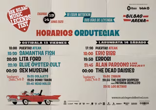 El "Legends", que se celebrará el próximo fin de semana, los días 13 y 14 de junio en el Bilbao Arena, cuenta este año con un cartel encabezado por nombres emblemáticos como Alan Parsons Project, Blue Öyster Cult (fecha exclusiva en el Estado), The Dead Daisies (fecha exclusiva Enel Estado), Lita Ford, Samantha Fish y Errobi, entre otros.