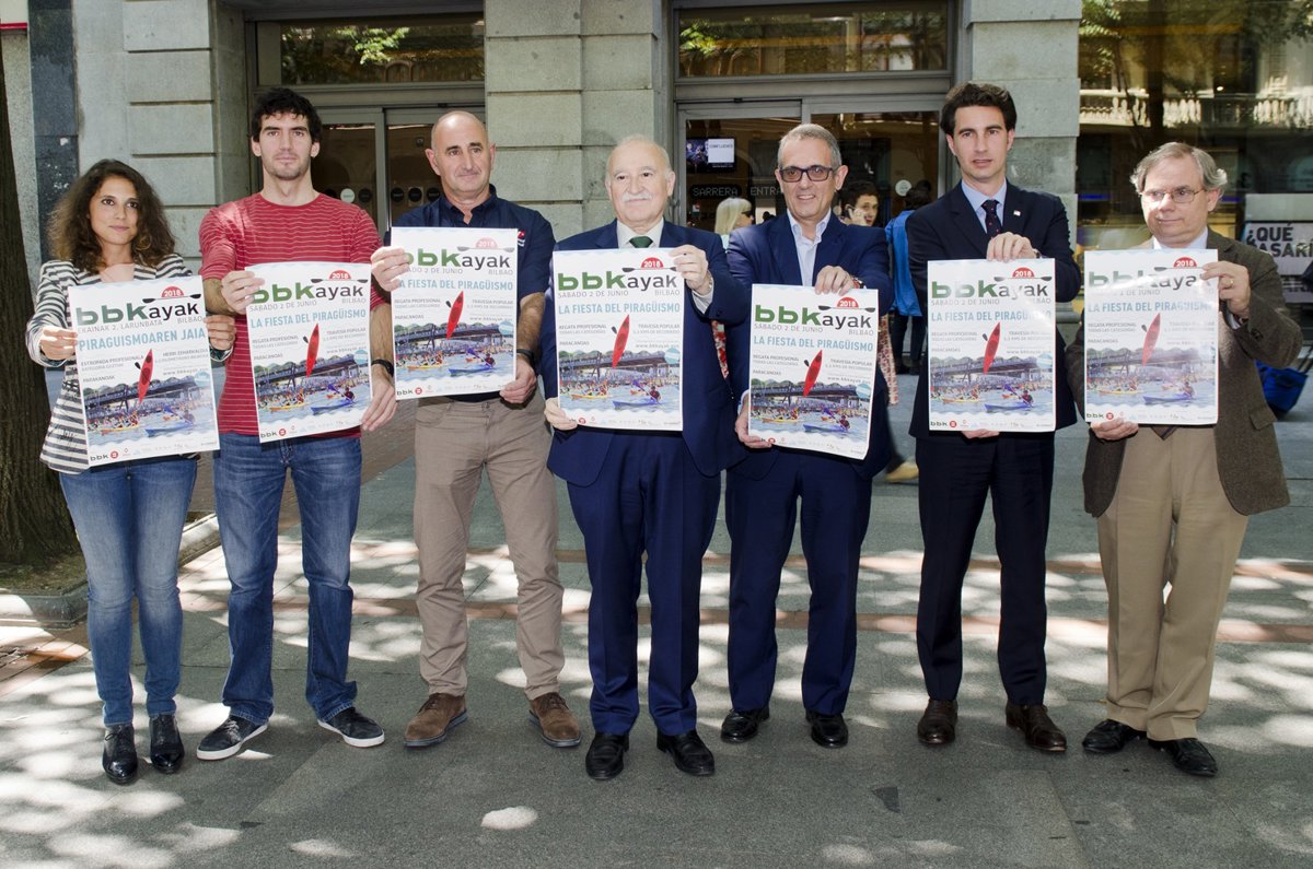 La presentación de este acontecimiento deportivo, que se celebrará por segunda vez, se ha realizado este lunes en la Sala BBK y a ella han asistido el director general de BBK, Gorka Martínez, el presidente de la Federación Vasca de Piragüismo, Joseba Saies, y Ander Elosegi, triple piragüista olímpico, entre otros.
