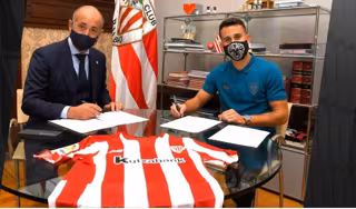 El navarro ha superado previamente el reconocimiento médico en el IMQ Zorrozaurre y después se ha desplazado hasta Ibaigane para firmar como rojiblanco.