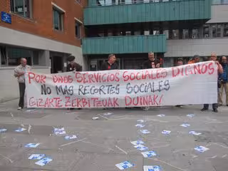 La plataforma se ha concentrado ante el Ayuntamiento de Barakaldo tras una pancarta tras una pancarta en la que se leía "Por unos servicios sociales dignos. No más recortes sociales". La representante del colectivo Isa García ha indicado que "el equipo de Gobierno y el alcalde a la cabeza priorizan subirse el sueldo a cubrir las necesidades más básicas de la población".