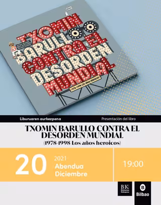 La Biblioteca de Bidebarrieta de Bilbao acogerá este lunes, día 20 de diciembre, la presentación del libro "Txomin Barullo contra el desorden mundial (1978-1998 los años heroicos)", donde su autor, Álvaro Gurrea, repasa la trayectoria de la histórica comparsa que fuera una de las impulsoras de la Aste Nagusia bilbaina.
