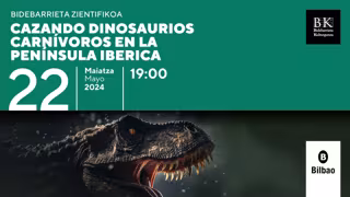 El espacio Bidebarrieta Kulturgunea del Ayuntamiento de Bilbao acogerá el próximo miércoles, 22 de mayo, la charla-coloquio 'Cazando dinosaurios carnívoros en la península ibérica' del investigador del Departamento de Geología de la Universidad del País Vasco Erik Isasmendi.